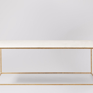 Aero shelving Unit, £299; Tivoli armchair in Clay, £519; and Crawford coffee table in gold leaf and marble £399, all Swoon Editions.